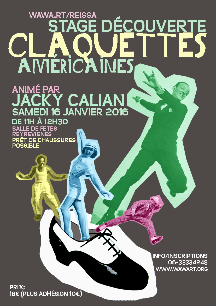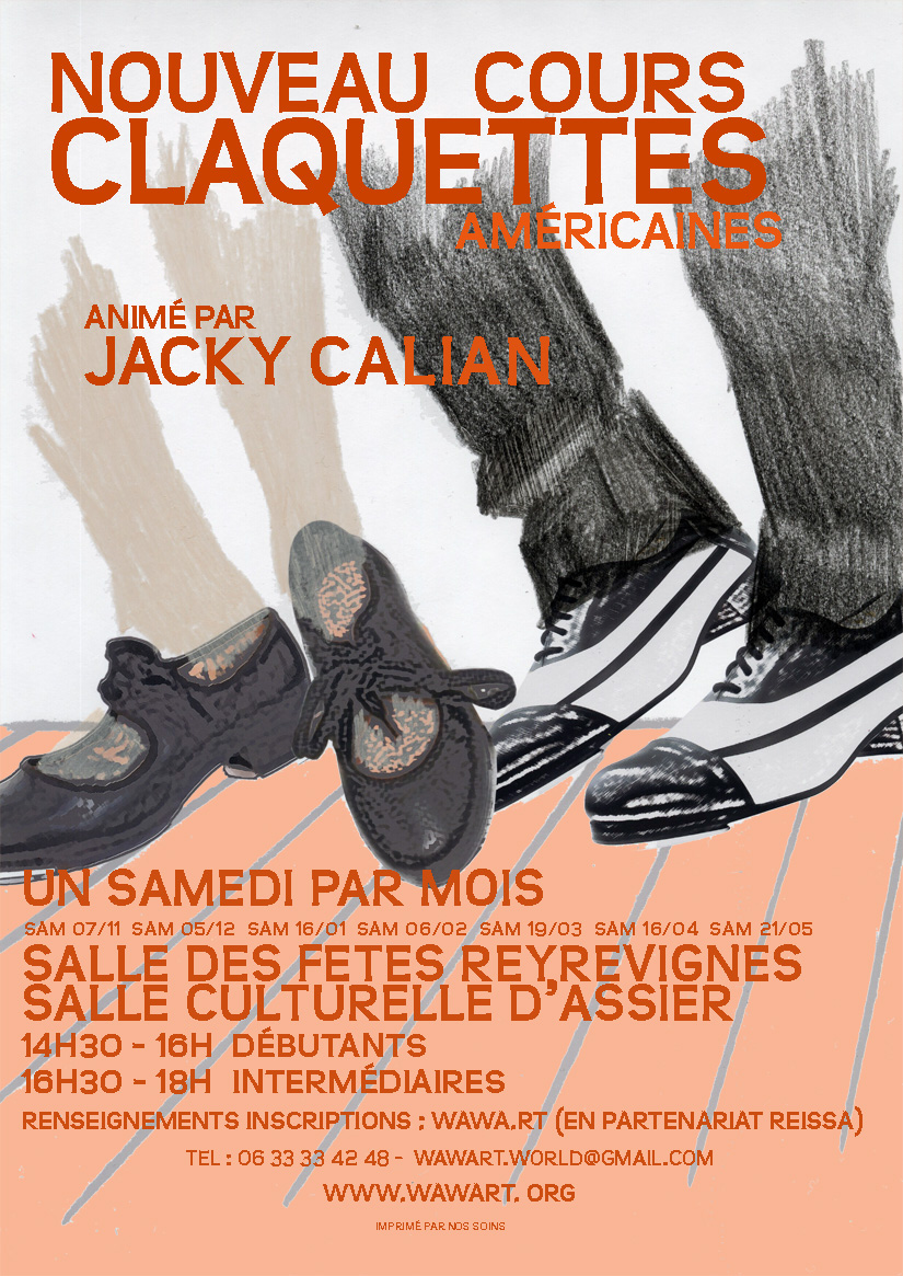 Stages et cours périodiques de claquettes américaines animés par Jacky Calian. Voir affiches ci-contre.